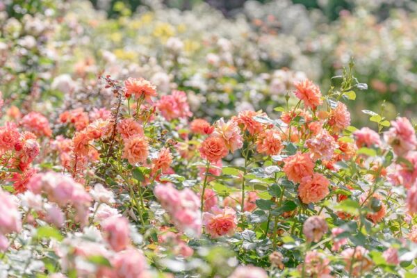 バラはさまざまな花色が存在します。色彩のローズガーデンは、バラを花色ごとに配置しました。色とりどりのバラが、繊細で美しいグラデーションを作り出します。