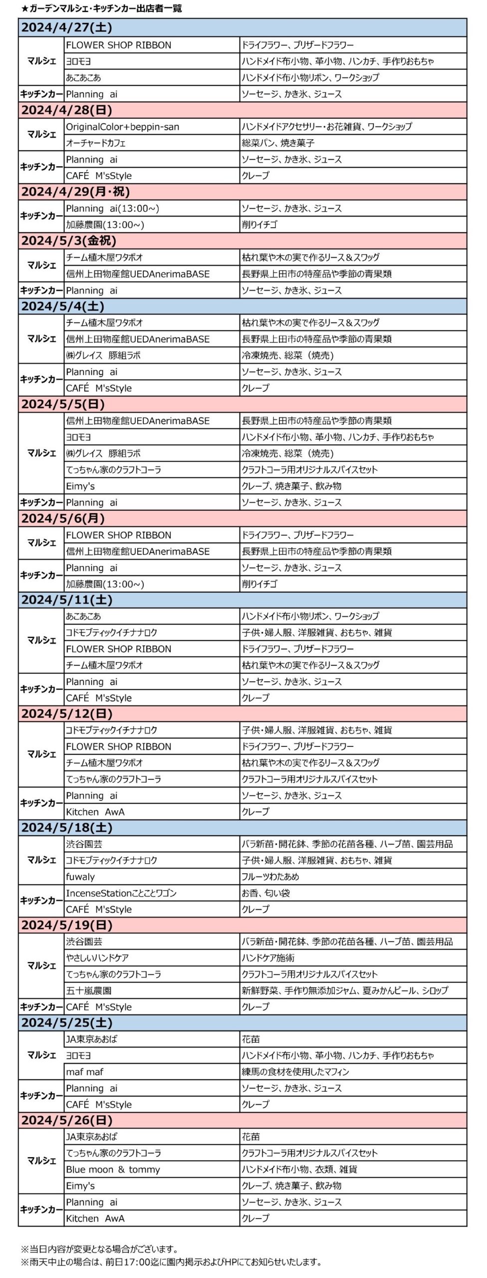 2024ガーデンマルシェ・キッチンカー出店者のお知らせ