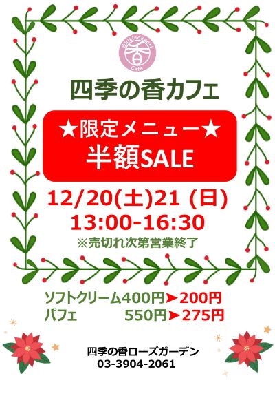 12/20(土)・21(日)に四季の香カフェ半額SALEを開催いたします。