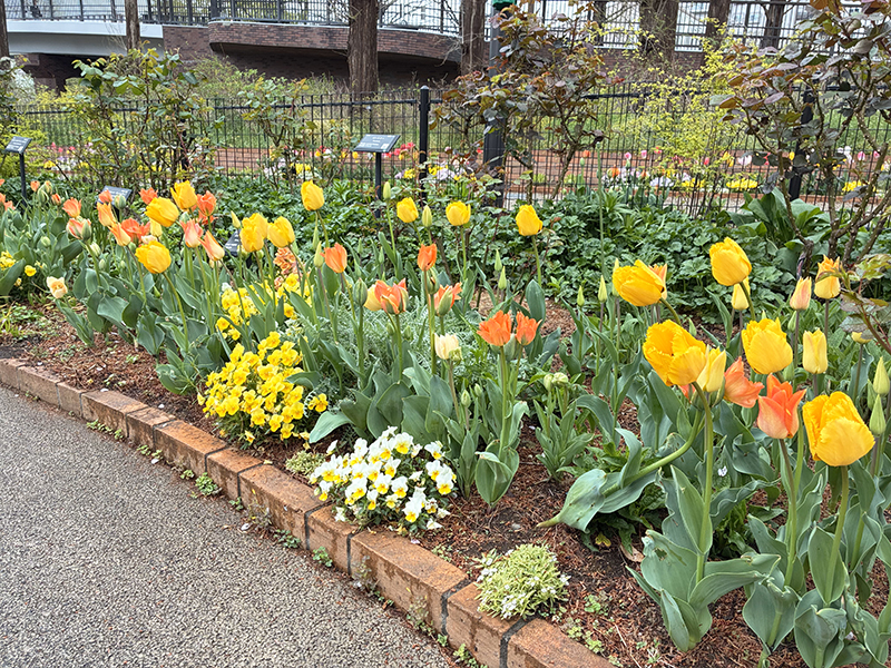 現在、チューリップは見ごろを迎えております。今年は昨年より開花の進みが早く、今後の天候状況を考えますと、花数が多い状態をお楽しみいただけるのはあと一週間ほどとなりそうです。ぜひお早めにご来園ください。