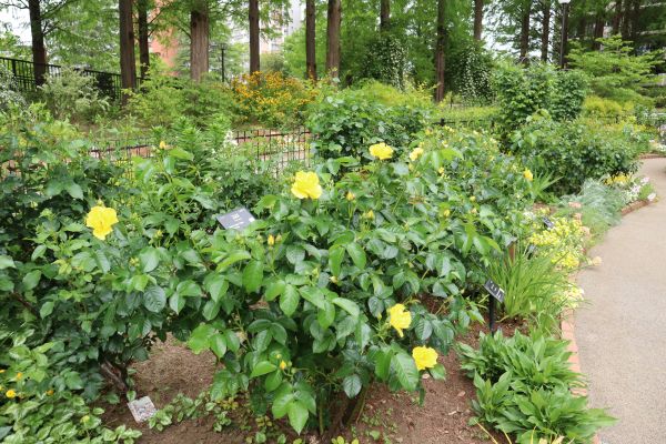 只今の園内の様子です。バラは蕾もだいぶ膨らみ、まだごく一部ですが開花が進んでいる品種もあります。ゴールデンウィークには見ごろを迎える予想です。※天候・気候により見ごろの時期は前後する場合があります。