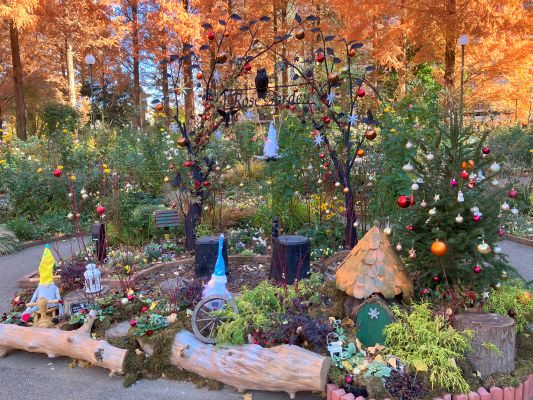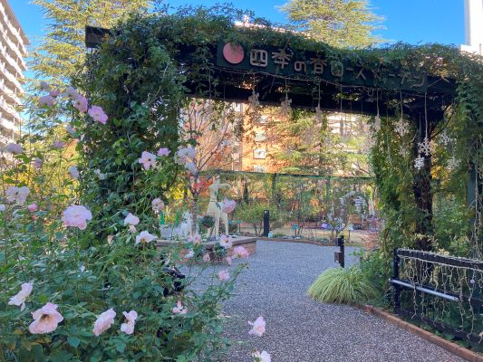 園内の装飾もクリスマス装飾となっており、白や黄色のバラの前にかわいらしいフォトスポットもありますので、ぜひご来園お待ちいたしております。