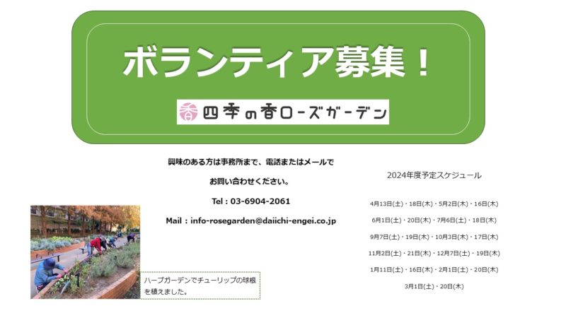 【申込期限】2024年3月23日(土)まで(※3月31日までに当園からメールにて返信いたします。)